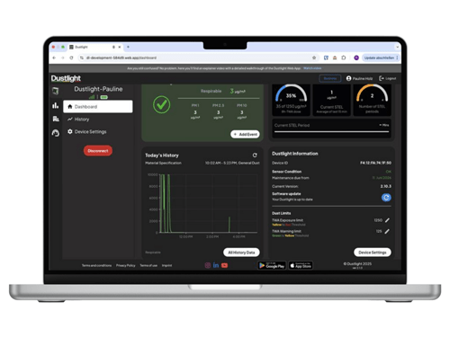 Durch die Dustlight Business Software erhalten Sie zusätzlich zur Smartphone-App auch Zugang zur Web-App, mit der Sie Ihre Daten komfortabel am Desktop analysieren und visualisieren können. Außerdem beinhaltet der Business-Software-Plan folgende Funktionen für eine bessere Dokumentation Ihrer Messsituationen.